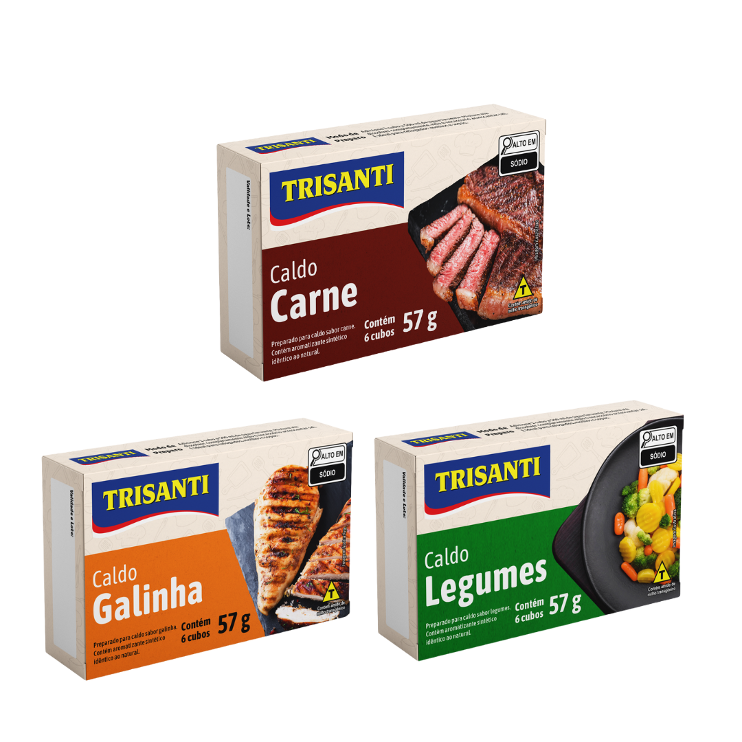 Os caldos em cubos Trisanti, eleva o sabor, enche de cremosidade e deixa sua receita com aquele aroma de dar água na boca.